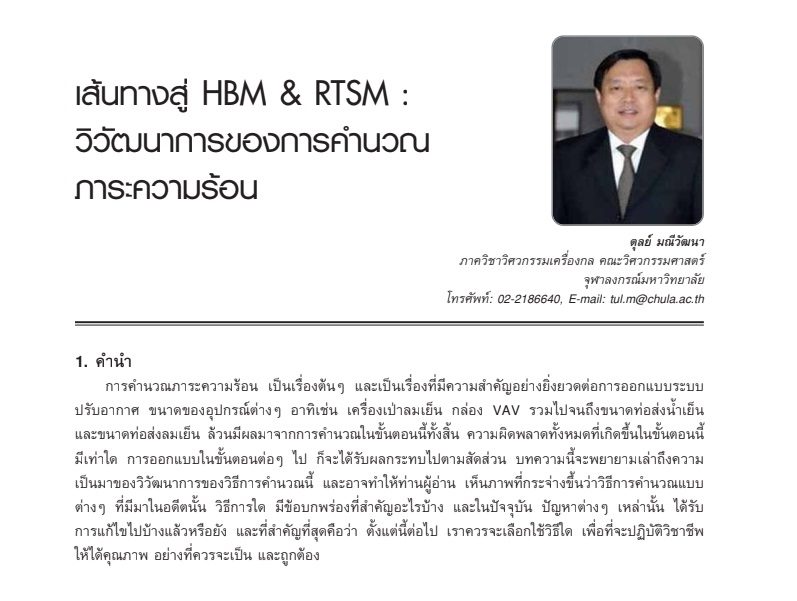 เส้นทางสู่ HBM&RTSM; : วิวัฒนาการของการคำนวณภาระความร้อน (บทความวิชาการ)