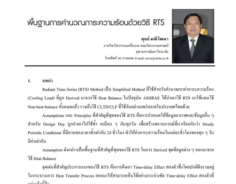 พื้นฐานการคำนวณภาระความร้อนด้วยวิธี RTS (บทความวิชาการ)
