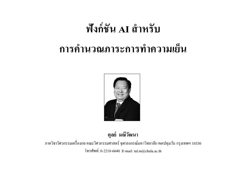 ฟังก์ชัน AI สําหรับ การคํานวณภาระการทําความเย็น (บทความวิชาการ)